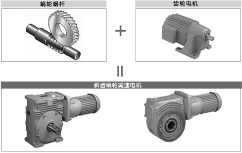 組合而成的斜齒蝸輪減速機(jī)